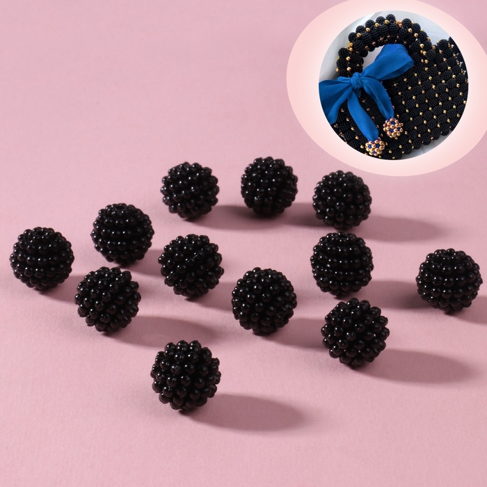 Бусины пришивные «Ежевика», d = 12 мм, 500 г, цвет чёрный