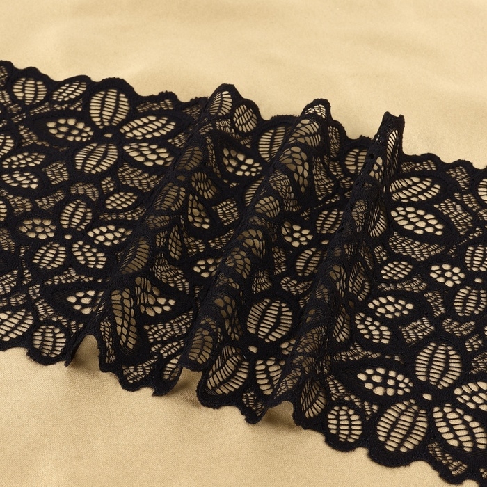 Кружевная эластичная ткань, 170 мм × 23 ± 1 м, цвет чёрный