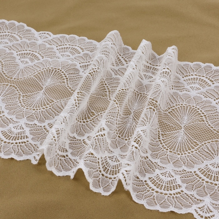 Кружевная эластичная ткань, 180 мм × 23 ± 1 м, цвет белый