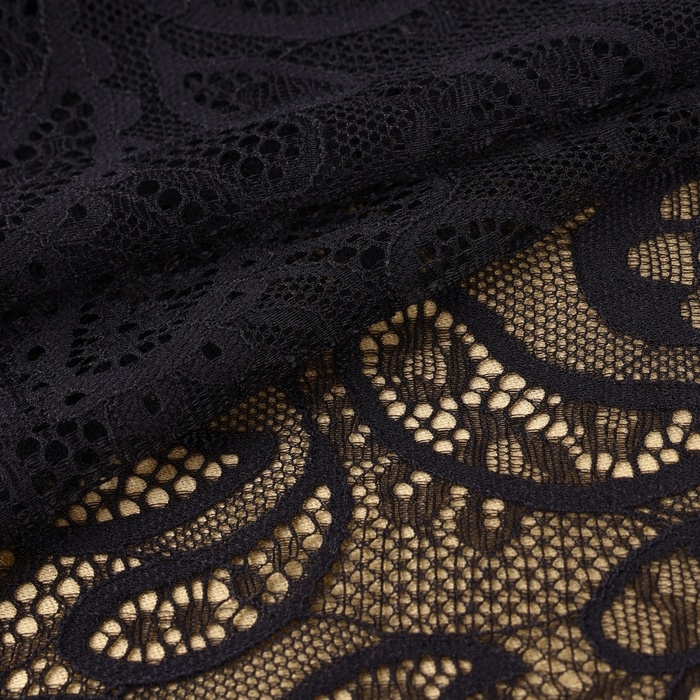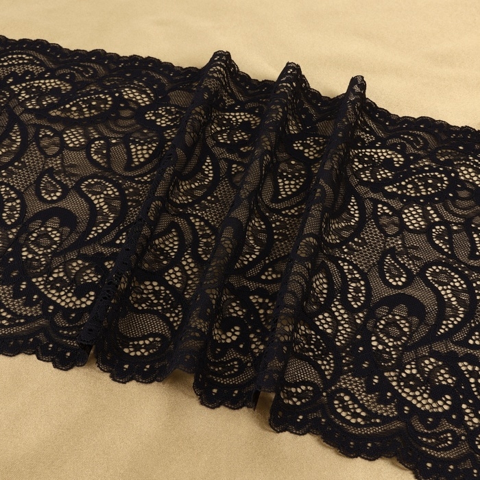 Кружевная эластичная ткань, 240 мм × 23 ± 1 м, цвет чёрный