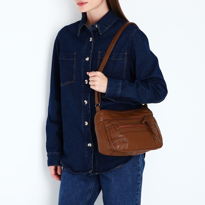 Сумка-мешок на молнии, цвет коричневый