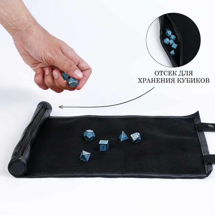 Шагайте по дорогам фэнтезийных миров со стилем и уверенностью, храня все ваши настольные игровые сокровища в удобной и стильной сумке с полем для D&D кубиков. Это ваш надёжный спутник в мире настольных ролевых игр. Cумка сочетает в себе функциональность и элегантность, позволяя вам организовать и легко переносить все необходимые аксессуары для игры.