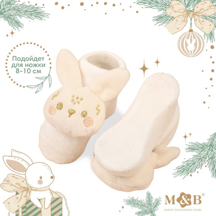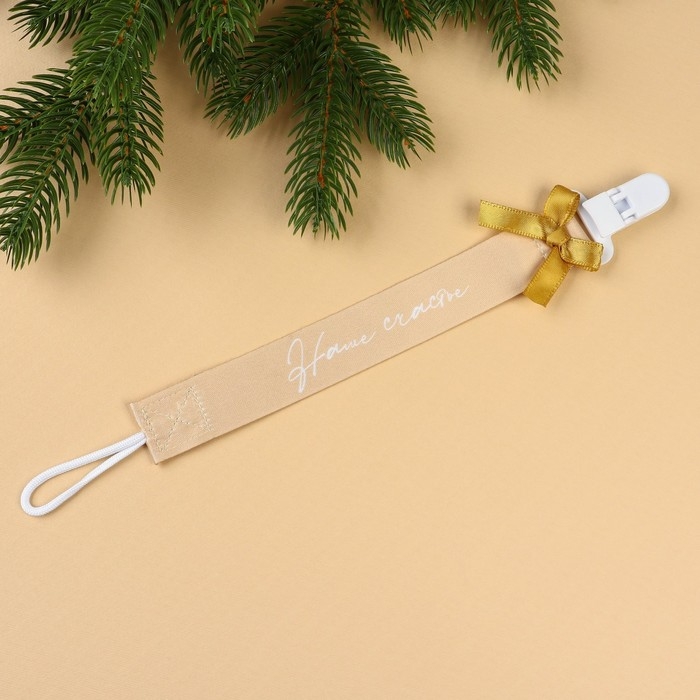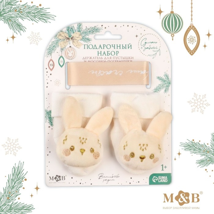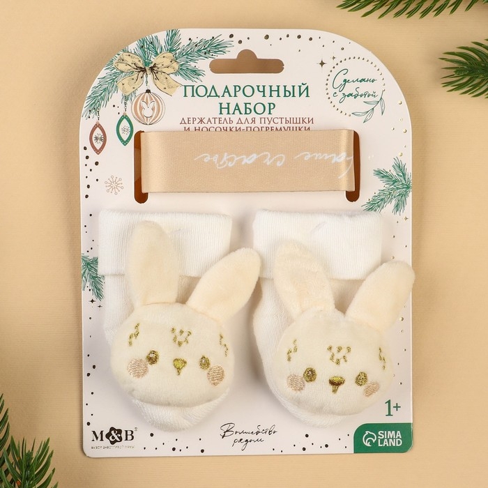 Подарочный набор новогодний: держатель для соски-пустышки на ленте и носочки - погремушки на ножки «Наше чудо»