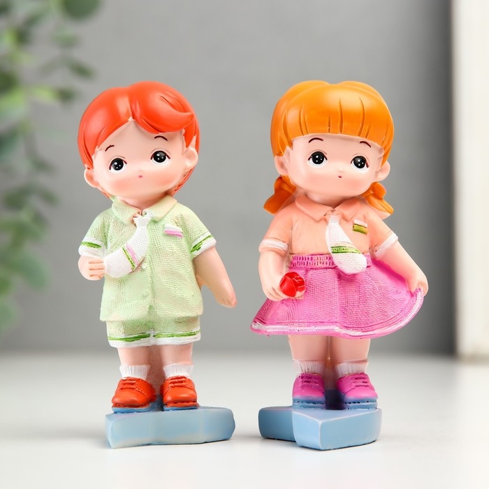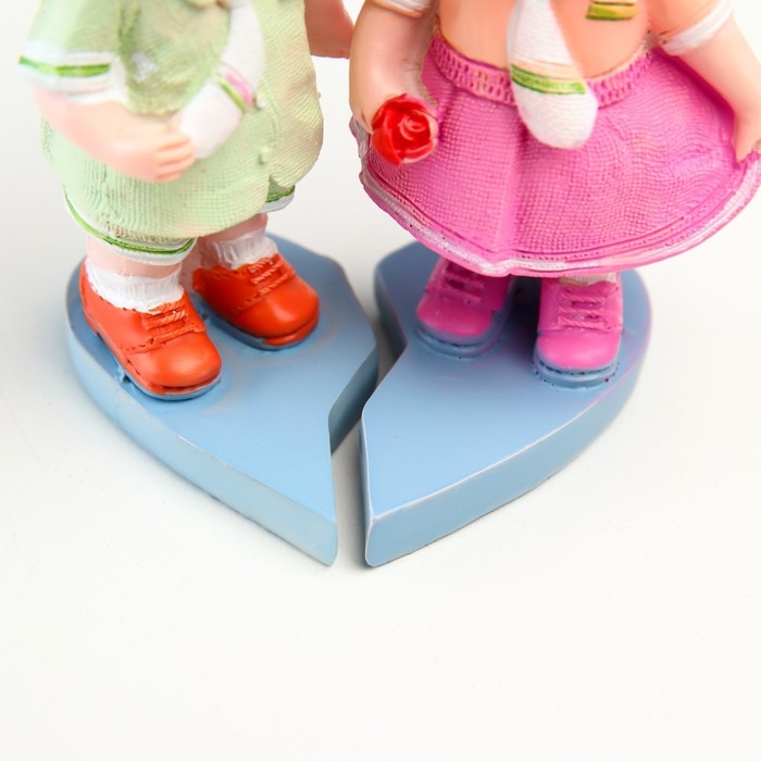 Сувенир полистоун "Малыши с сумочками на сердце" набор 2 шт 5х4,5х9 5х4,8х9 см
