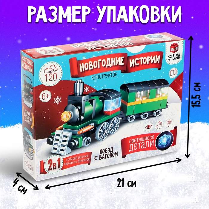 Конструктор «Новогодние истории. Поезд с вагоном», 120 деталей