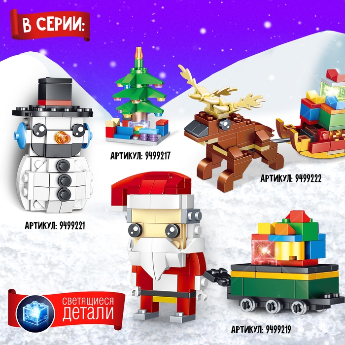 Конструктор новый год «Праздничный снеговик», 74 детали