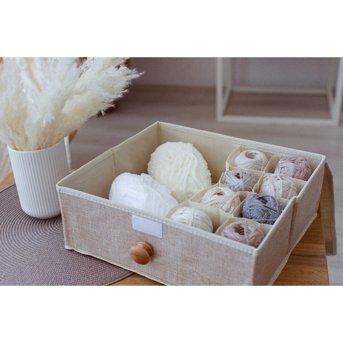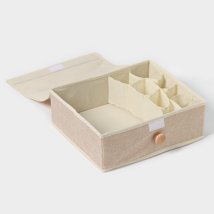 Органайзер для хранения белья LaDо́m «Франческа», 9 ячеек, с крышкой, 35×30×12 см, цвет бежевый