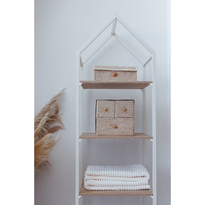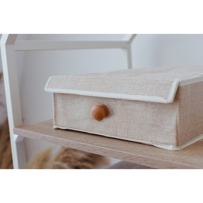 - Прямоугольный короб с легкостью поместятся на полке в многоярусном шкафу, секционном шкафчике и даже прикроватной тумбочке.