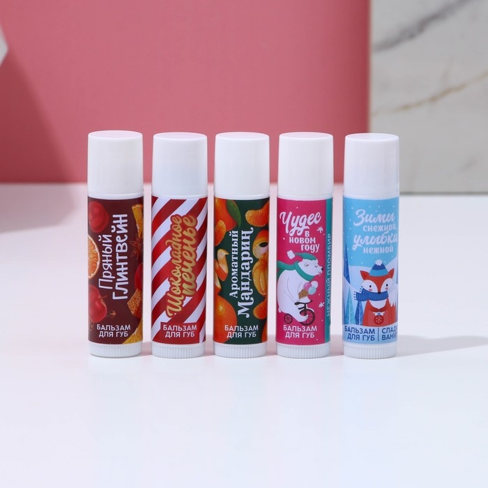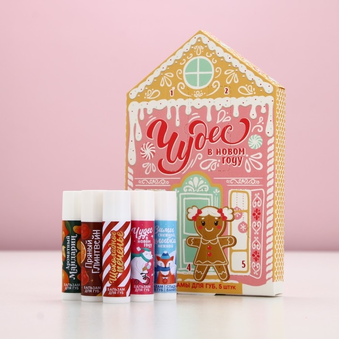 Подарочный набор косметики «Чудес в Новом Году!», бальзам для губ, 5 х 10 г, ЧИСТОЕ СЧАСТЬЕ