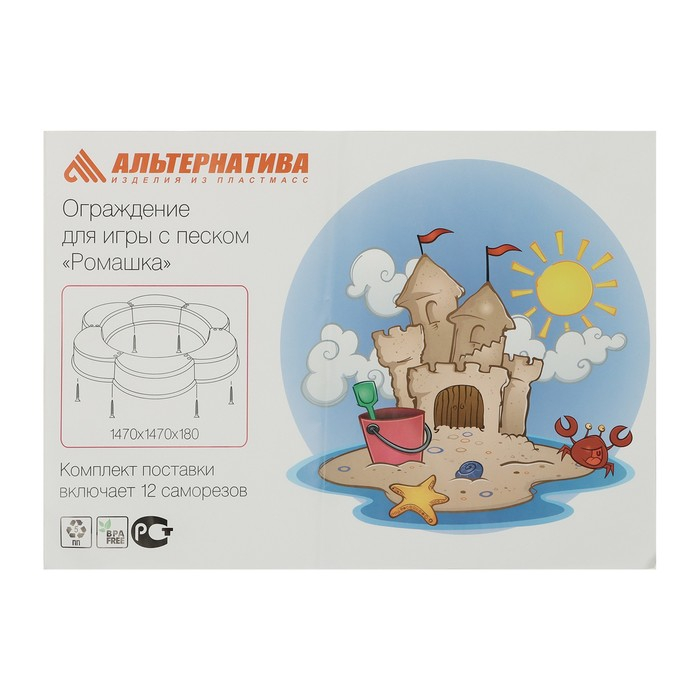 Песочница детская пластиковая, без крышки, 147 × 147 × 18 см, МИКС, «Ромашка»