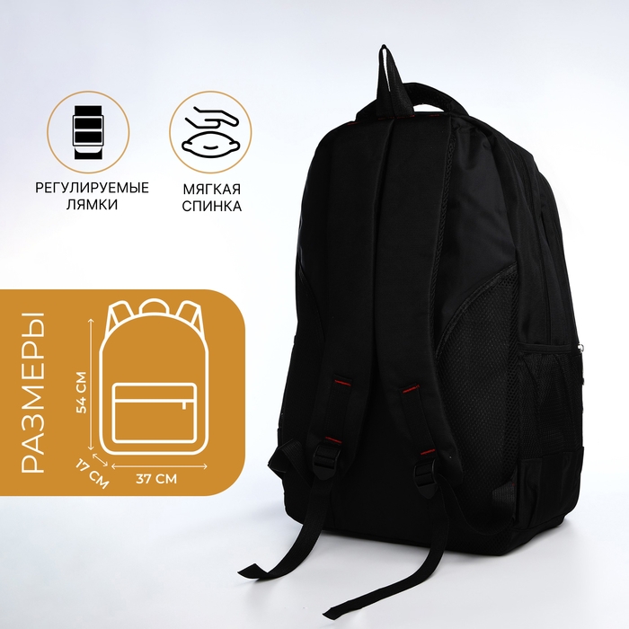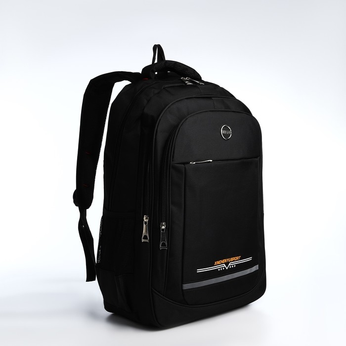 Рюкзак молодёжный из текстиля, 2 отдела на молнии, 4 кармана, цвет чёрный/оранжевый