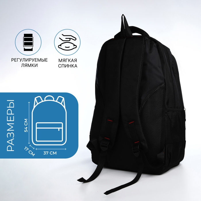 Рюкзак молодёжный из текстиля, 2 отдела на молнии, 3 кармана, цвет чёрный/синий