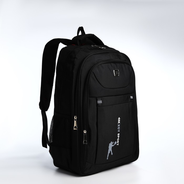 Рюкзак молодёжный из текстиля, 2 отдела на молнии, 3 кармана, цвет чёрный/серый