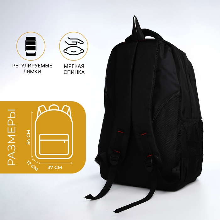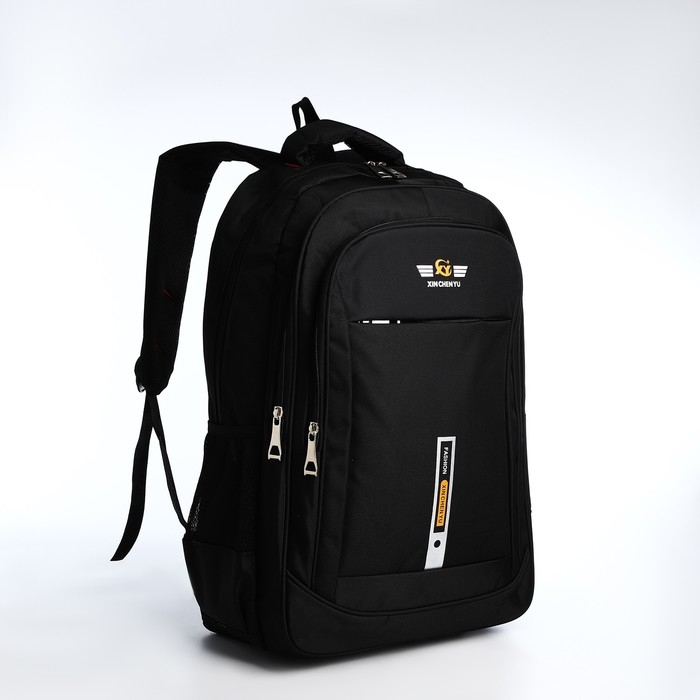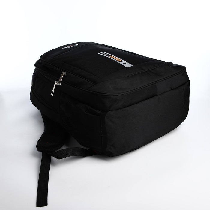 Рюкзак молодёжный из текстиля, 2 отдела на молнии, 4 кармана, цвет чёрный/оранжевый