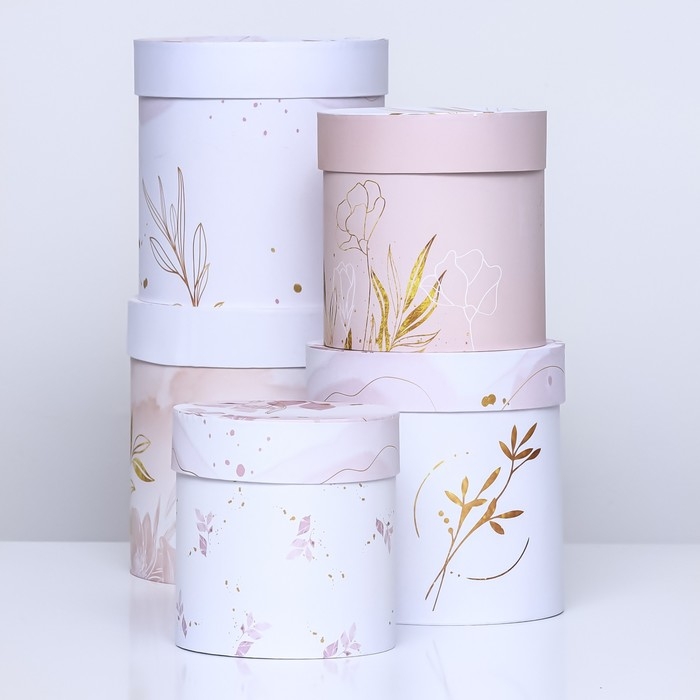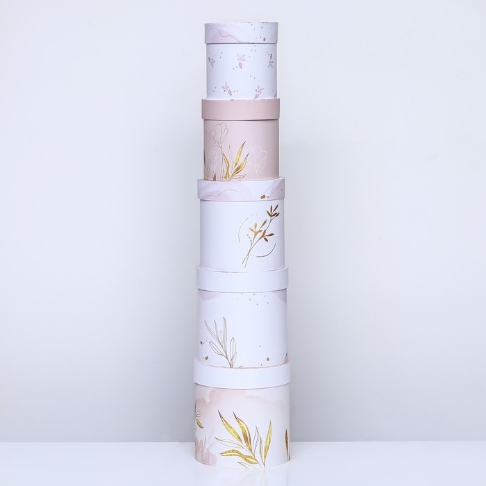 Набор шляпных коробок 5 в 1" Нежность" , 23 х23 - 15 х 15 см