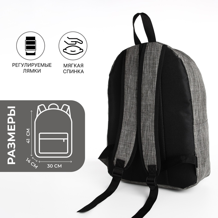 Рюкзак школьный из текстиля на молнии, наружный карман, цвет серый