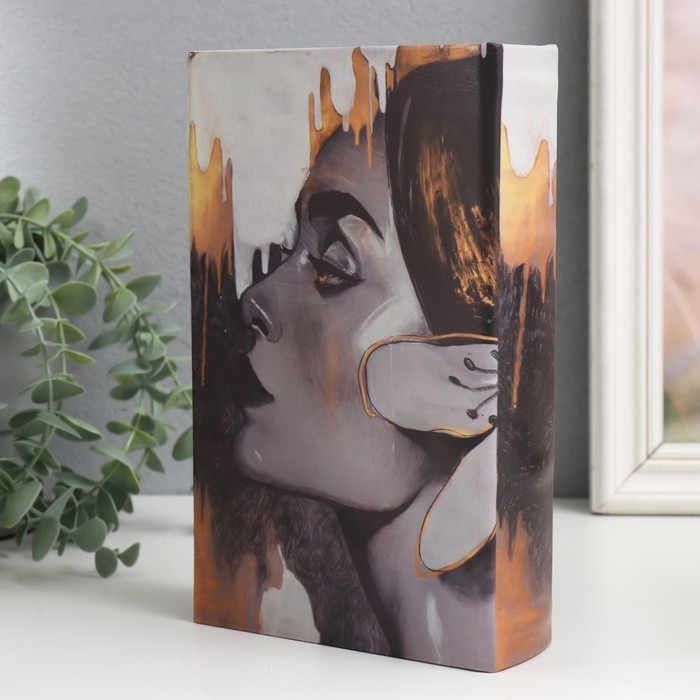 Сейф-книга дерево кожзам "Профиль девушки" 21х13х5 см