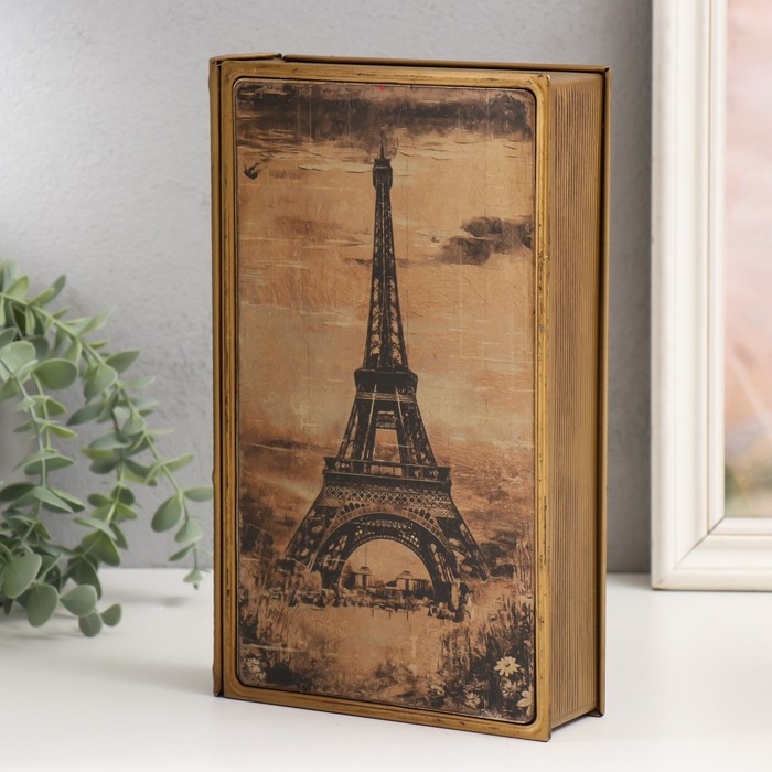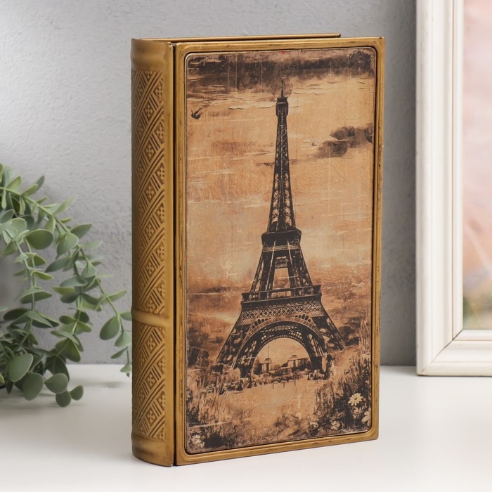 Шкатулка-книга металл, кожзам "Эйфелева башня. Красивый закат" 26х16х5 см