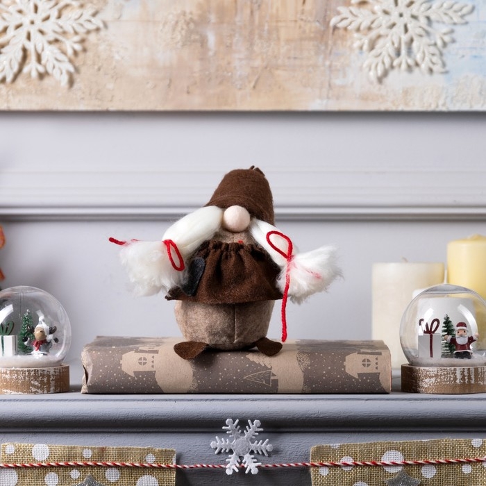 Светодиодная фигура «Гном-боровик» 8 × 20 × 8 см, текстиль, батарейки AG10х3 (в комплекте), свечение тёплое белое