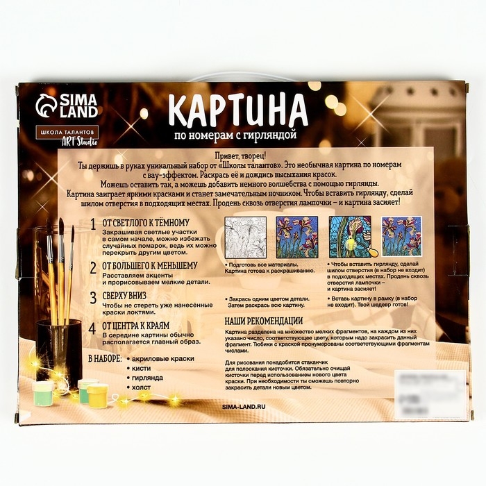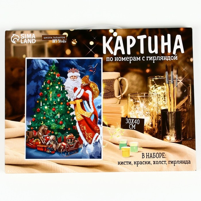 Новогодняя картина по номерам с подрамником и гирляндой «Новый год! Настоящая сказка», 30 х 40 см