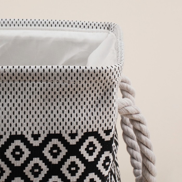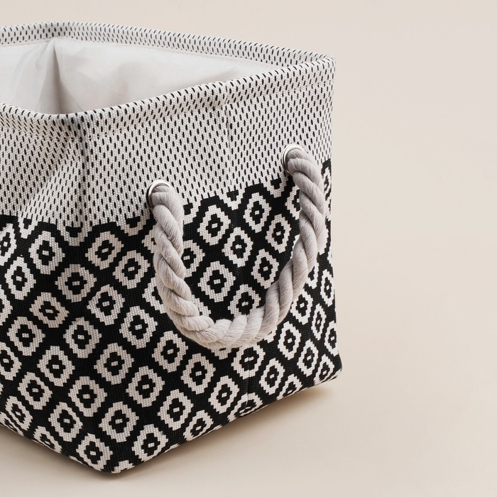 Короб выполнен из прочных материалов — полиэстера, хлопка и металла, что гарантирует его долговечность и устойчивость к износу. Белый цвет с нежным узором придает коробу утонченность и универсальность, что позволяет ему идеально вписаться в любой интерьер, будь то современная гостиная, уютная спальня или практичная прихожая.