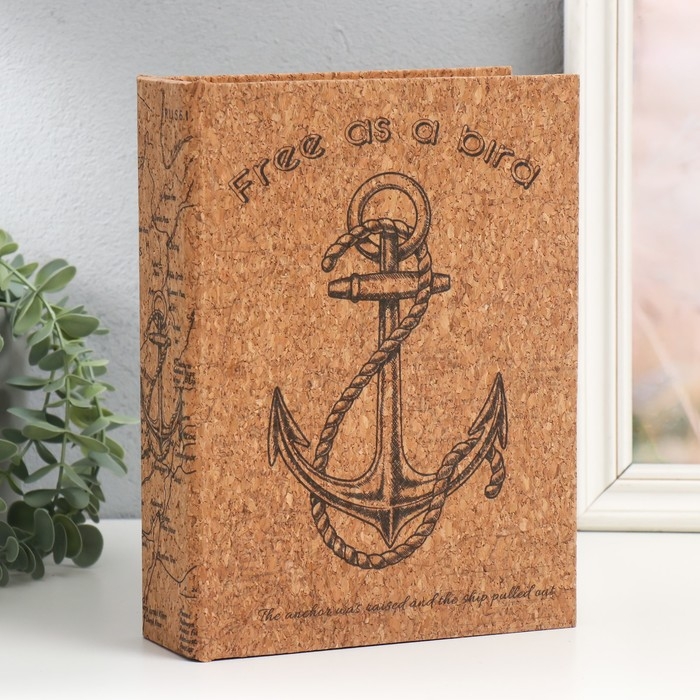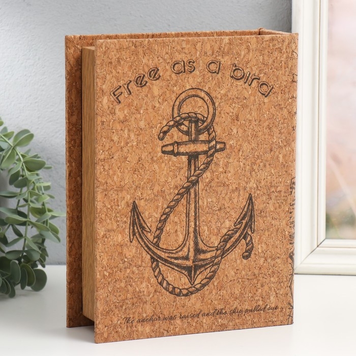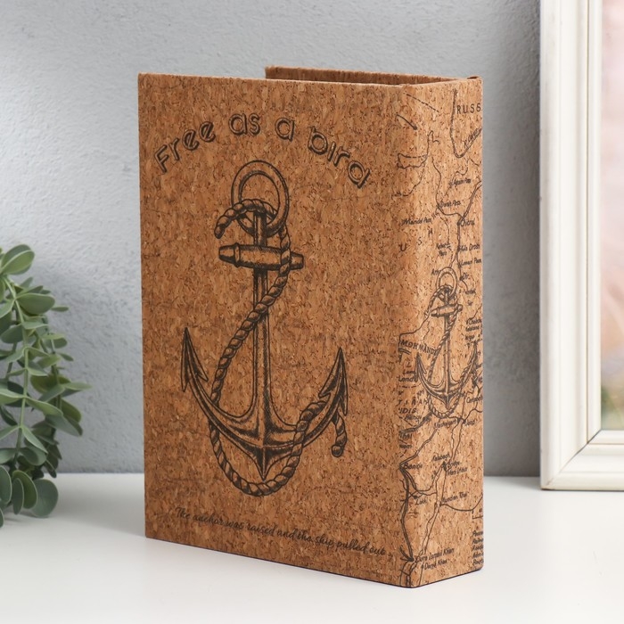 Шкатулка-книга дерево кожзам под пробку "Якорь" 6х18х24 см