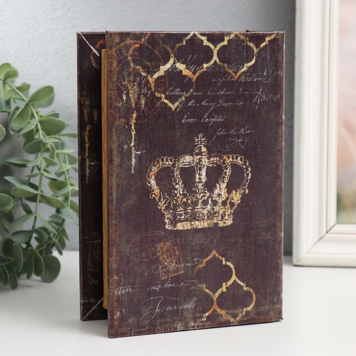 Шкатулка-книга дерево кожзам, стекло "Золотая корона" 4,3х12х18 см