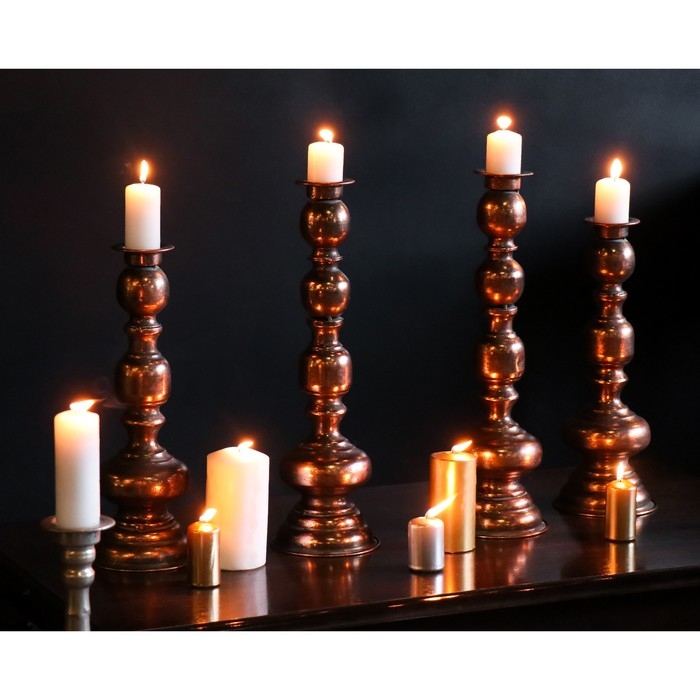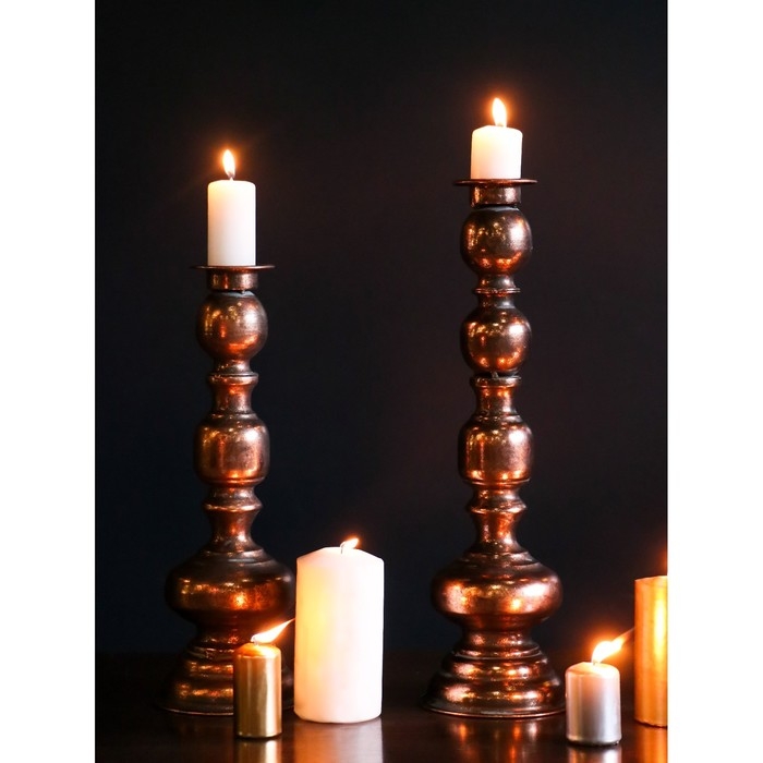 Подсвечник металл на 1 свечу "Эрмете" состаренная бронза 13,5х13,5х36,5 см