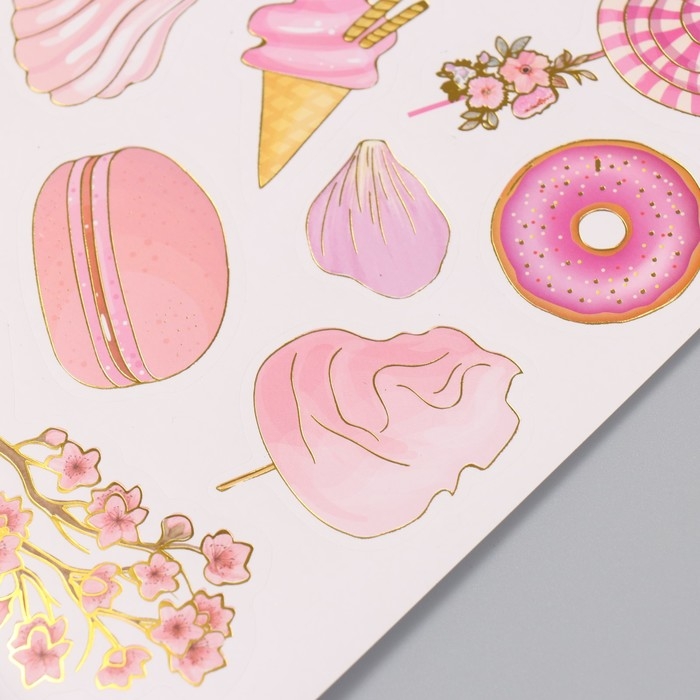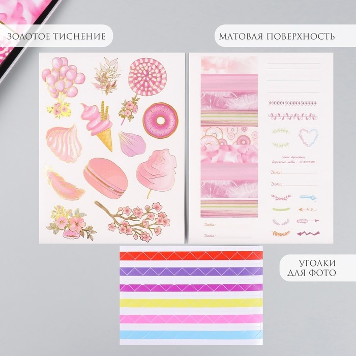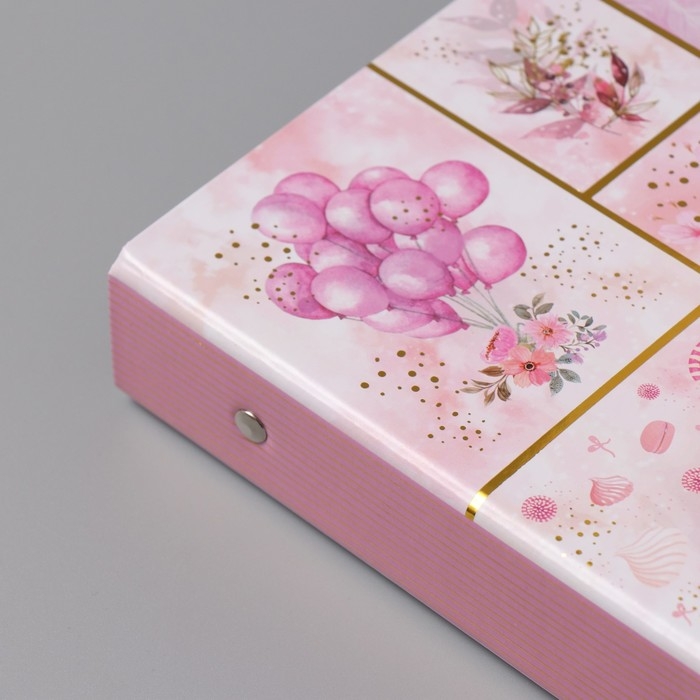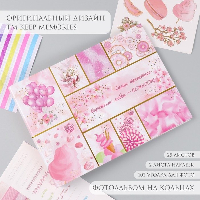 Фотоальбом 25 листов (наклейки+кольца) "Сладости. Нежность" тиснение золото 19х27х3 см