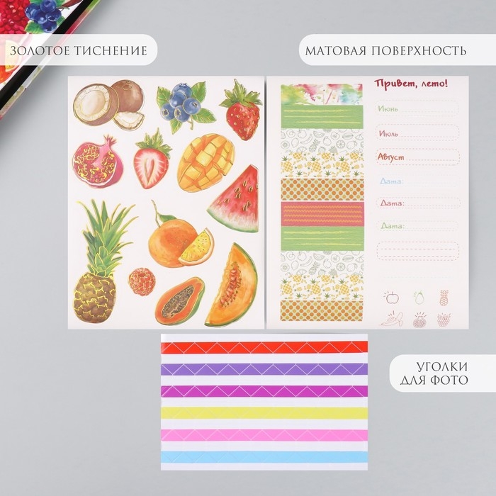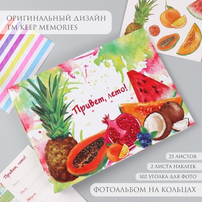 Фотоальбом 25 листов (наклейки+кольца) "Фрукты. Привет, лето!" 19х27х3 см