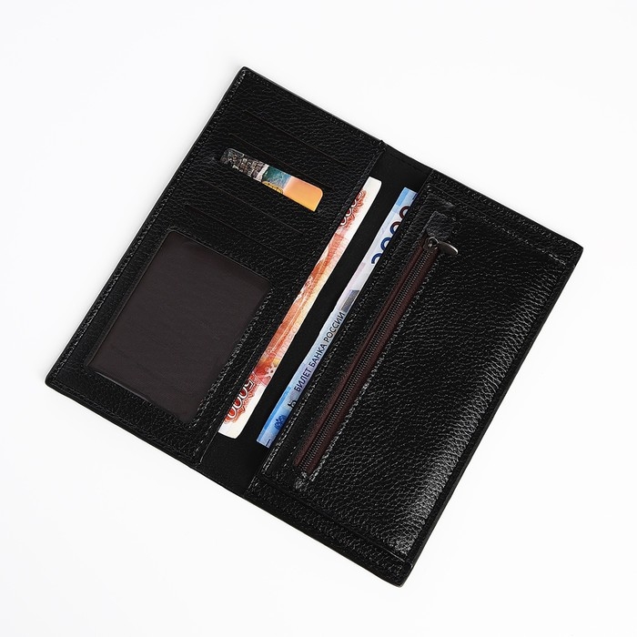 Портмоне мужское без застежки, отдел для купюр, для карт, для монет, цвет чёрный