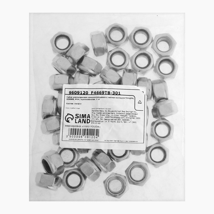 Гайка ТУНДРА, самоконтрящаяся, DIN 985, класс прочности 8, оцинкованная, M14, 1 кг 960912