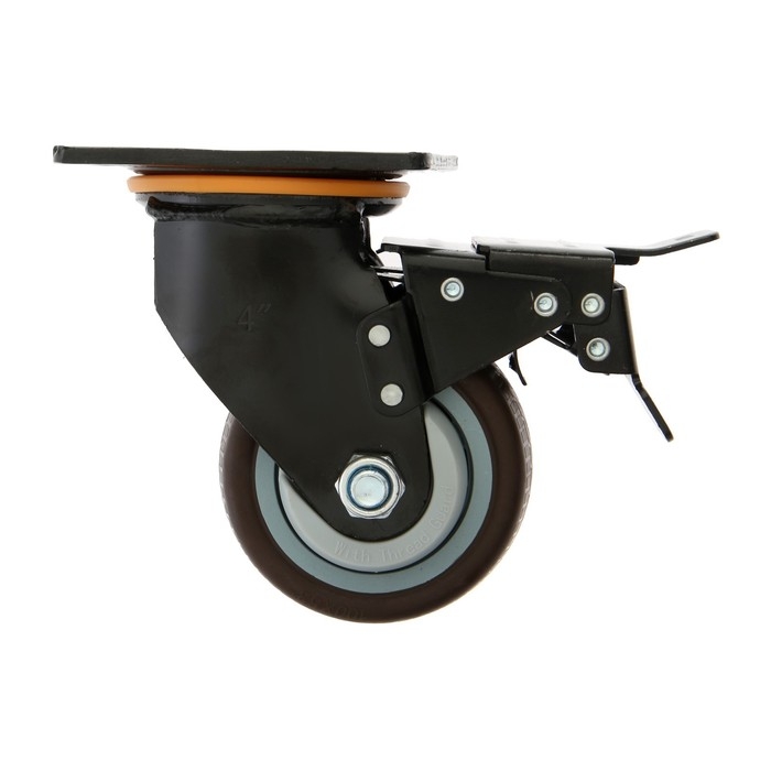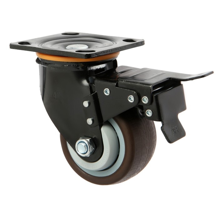 Колесо для трансп. тележек поворотное ТУНДРА, d=100 мм, на пдощадке, со стопорм, покрытие TPR 9917