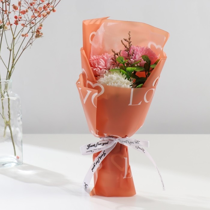 Букет из мыльных лепестков "Гвоздики" 11х8х25 см