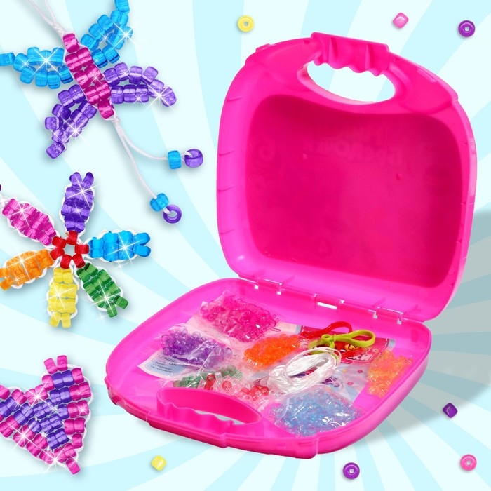 Игровой набор «Чемодан: Милые брелочки», крупный бисер, розовый