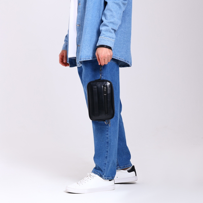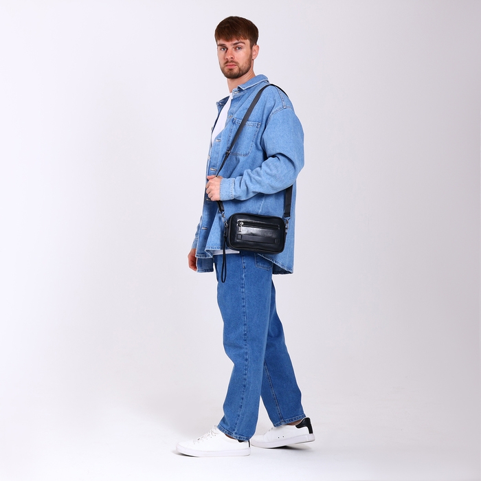 Сумка мужская через плечо, искусственная кожа, цвет чёрный