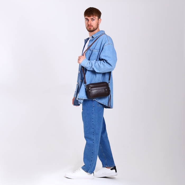 Сумка мужская через плечо, искусственная кожа, цвет коричневый