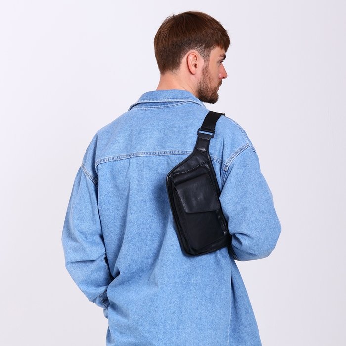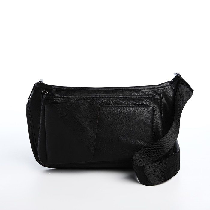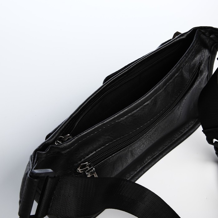 Поясная сумка на молнии, 3 наружных кармана, цвет чёрный
