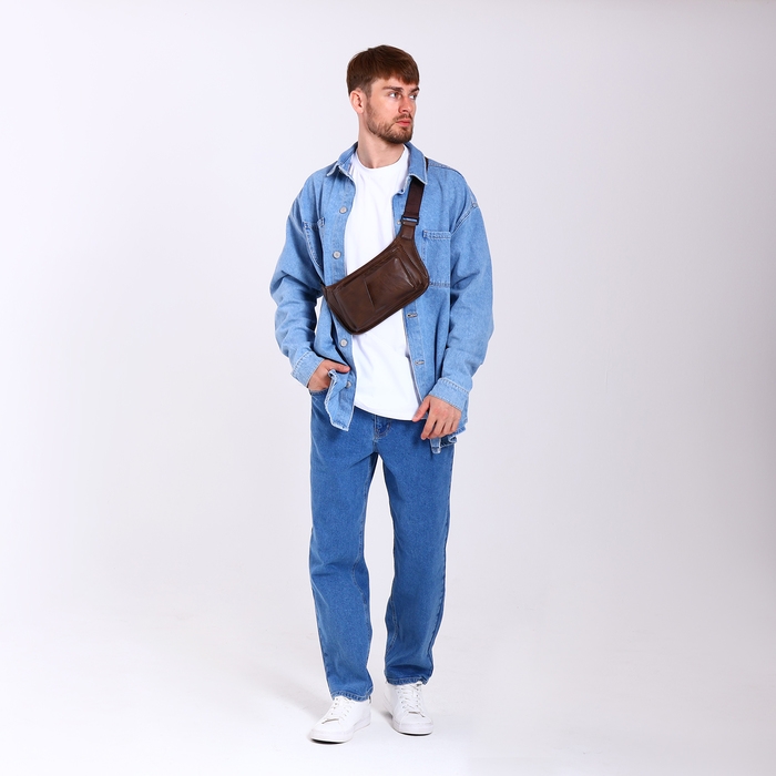 Поясная сумка на молнии, 3 наружных кармана, цвет коричневый