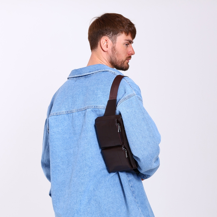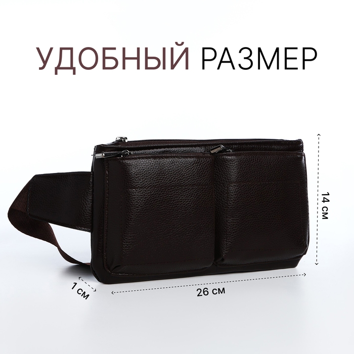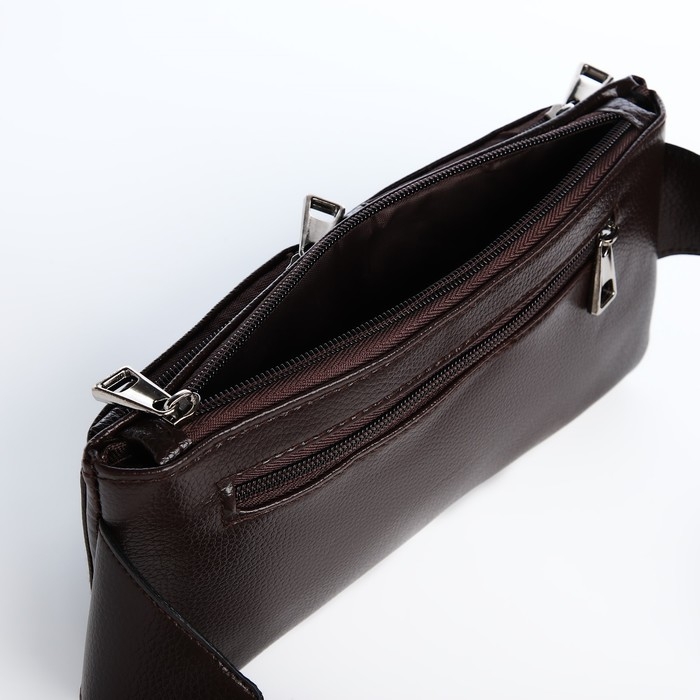 Сумка поясная на молнии, 2 наружных кармана, цвет коричневый