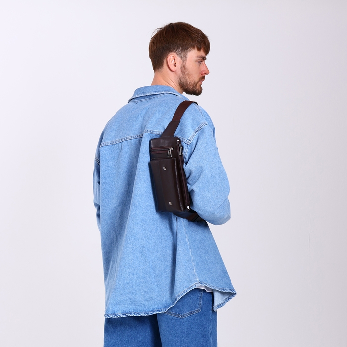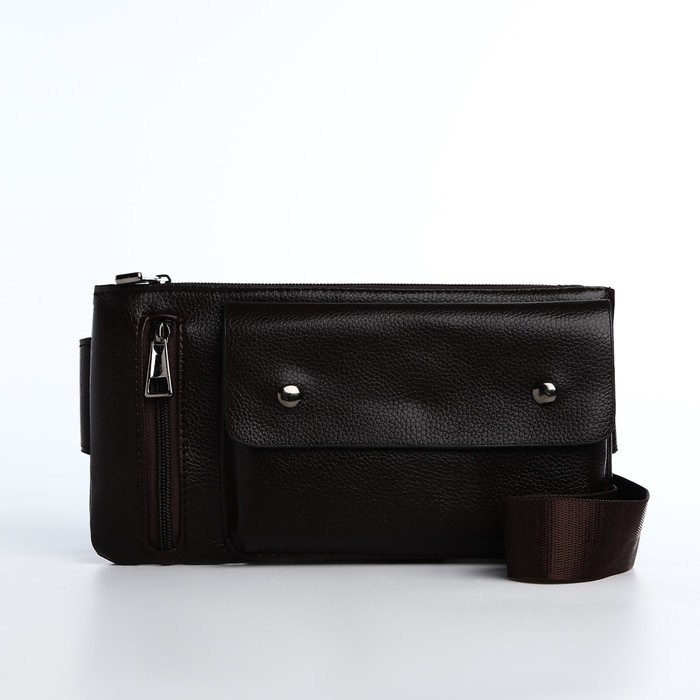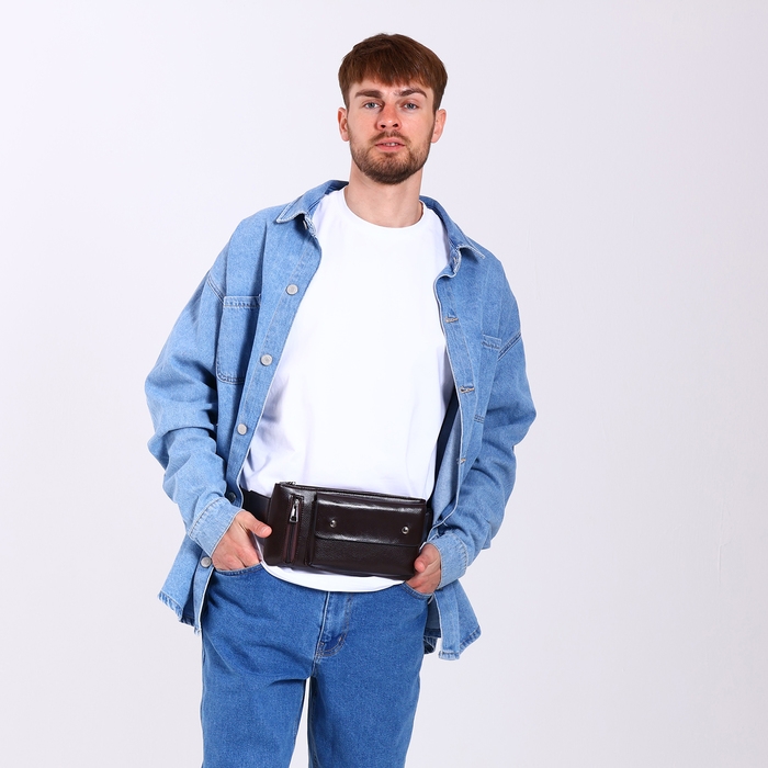 Сумка поясная на молнии, 2 наружных кармана, цвет коричневый