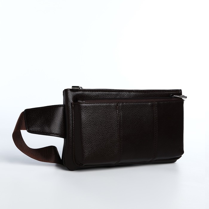 Сумка поясная на молнии, 2 наружных кармана, цвет коричневый