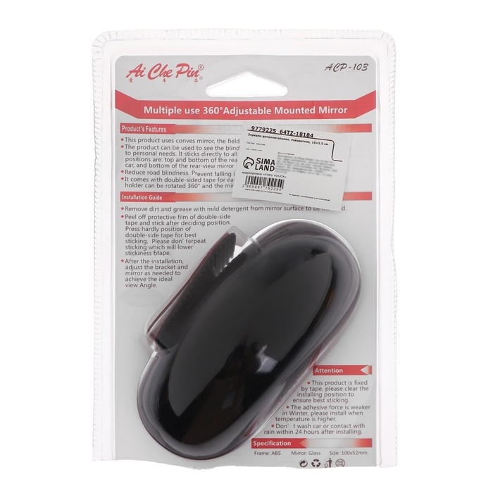 Дополнительное поворотное зеркало – это полезный автомобильный аксессуар, который расширяет обзор водителя и помогает предотвратить аварийные ситуации. Зеркало имеет размеры 10x5.5 см и легко устанавливается на любое удобное место в автомобиле.