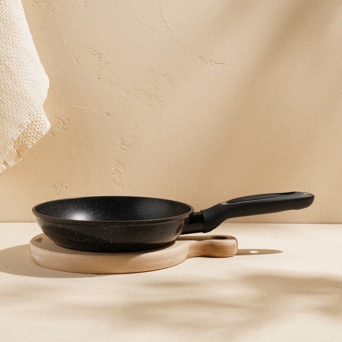 - Эргономичный дизайн: несъёмная ручка и продуманный дизайн обеспечивают комфортное использование, а чёрный цвет добавляет сковороде стильный и современный вид.