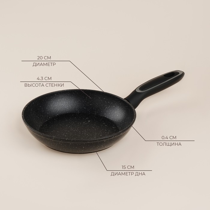 - Оптимальные размеры: сковорода диаметром 20 см и высотой стенок 4,3 см позволяет готовить порции для 1-2 человек, идеально подходя как для завтраков, так и для небольших ужинов.