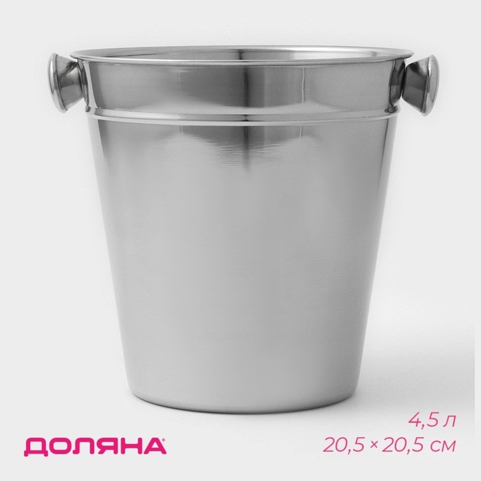 Ведро для льда из нержавеющей стали Доляна, 4,5 л, 20,5×20,5 см, цвет хромированный