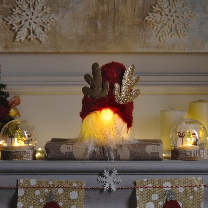 Светодиодная фигура «Гном красный» 12 × 19 × 12 см, текстиль, батарейки AG10х3 (в комплекте), свечение тёплое белое