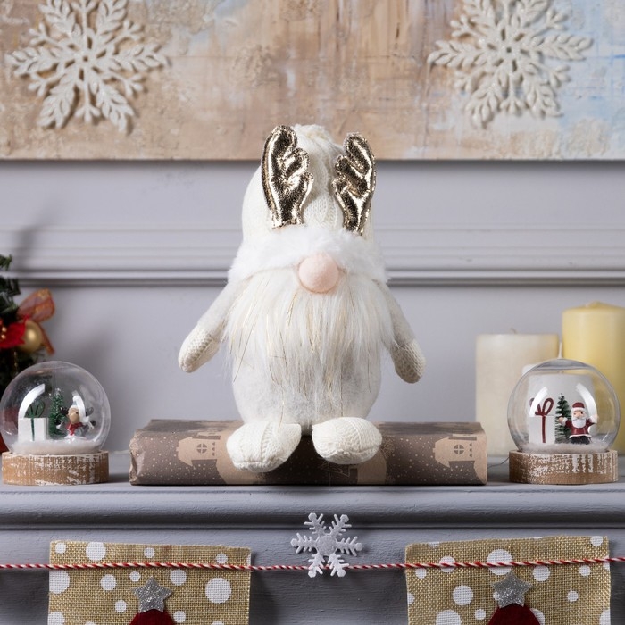Светодиодная фигура «Гном белый» 20 × 24 × 10 см, текстиль, батарейки AG10х3 (в комплекте), свечение тёплое белое