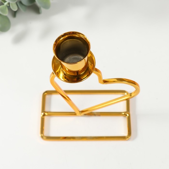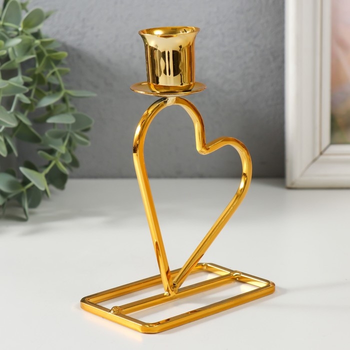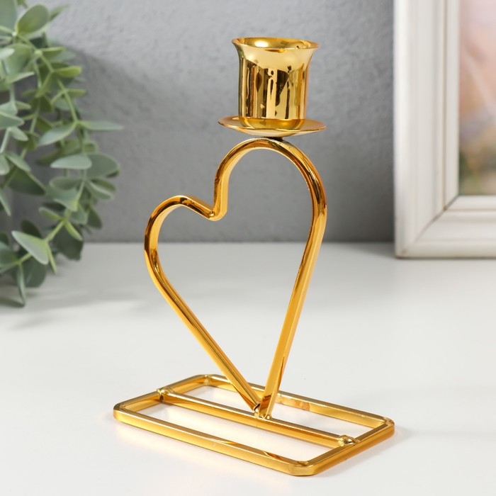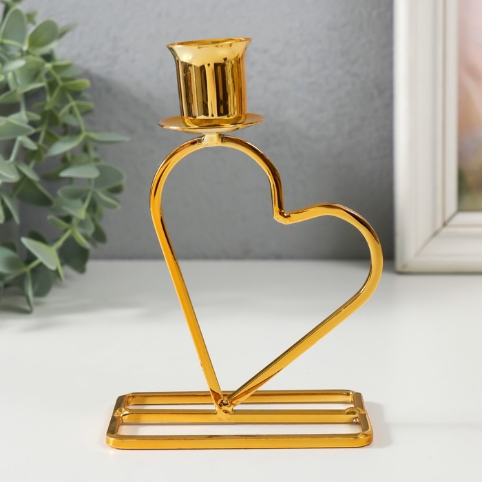 Подсвечник металл на 1 свечу "Сердце" d=2,3 см золото 5,8х9,3х14 см