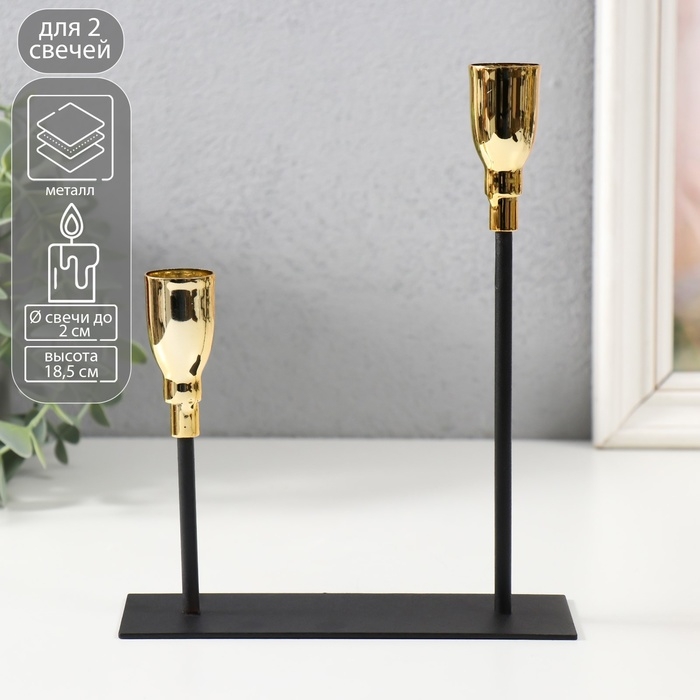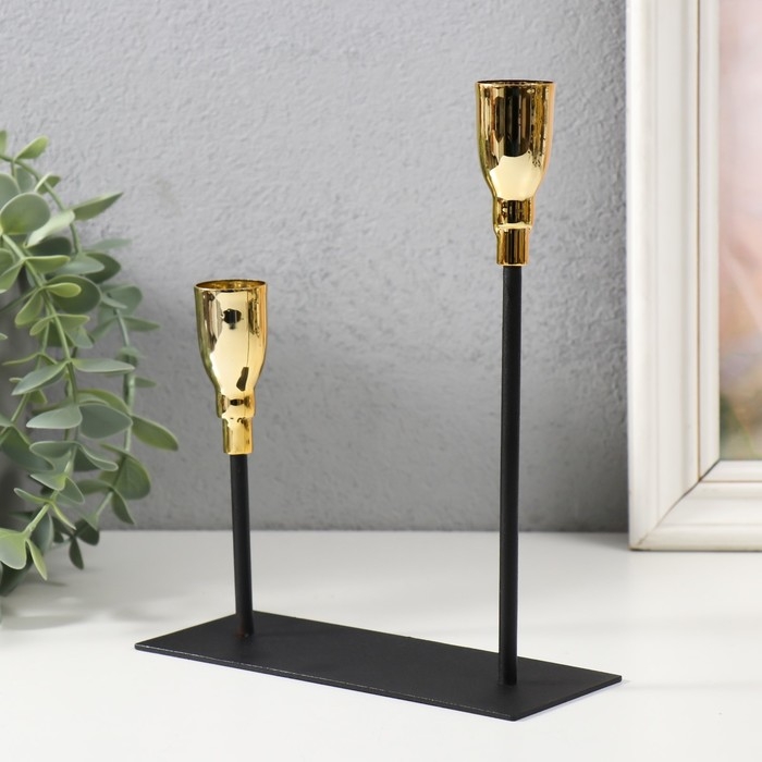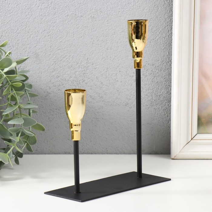 Подсвечник металл на 2 свечи "Ахиллес" чёрный с золотом 15,5х6х18,5 см